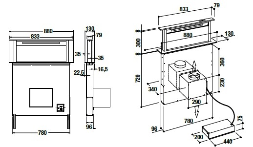 - Размеры прибора Ш х В x Г ≈ 880 х 720-1.020 х 340 мм