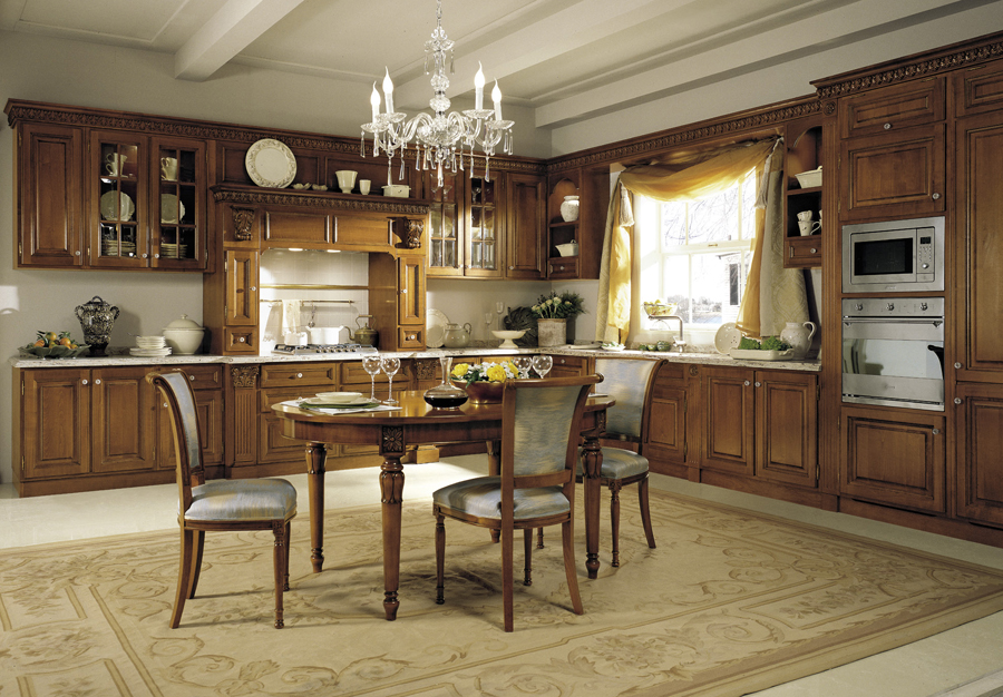 - эстетичность. Черты классики в кухнях Италии сохранили все свое обаяние. Изделия привлекают взгляд симметричностью, плавными изящными формами, изысканным, но лаконичным декором. Поверхности часто окрашиваются в светлые тона — белый, бежевый, оттенок слоновой кости или им оставляют естественный цвет и узор дерева. Некоторые дизайнеры предлагают и яркие решения;
