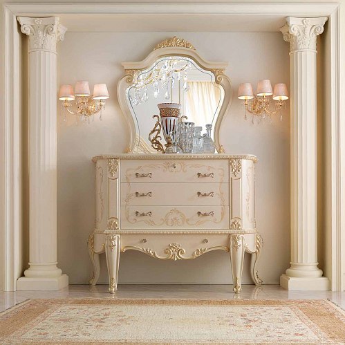 Особенность итальянской спальной мебели — эффектные изголовья кроватей. Их делают из натурального дерева, обивают бархатистым велюром или натуральной кожей, декорируют каретной стяжкой, зеркальными вставками, встроенной светодиодной подсветкой. Помимо классических моделей с прямоугольным изголовьем производители предлагают необычные — в виде губ, резной ракушки. Вам не придется искать красивые аксессуары для спальни, ведь такая кровать будет главным украшением.