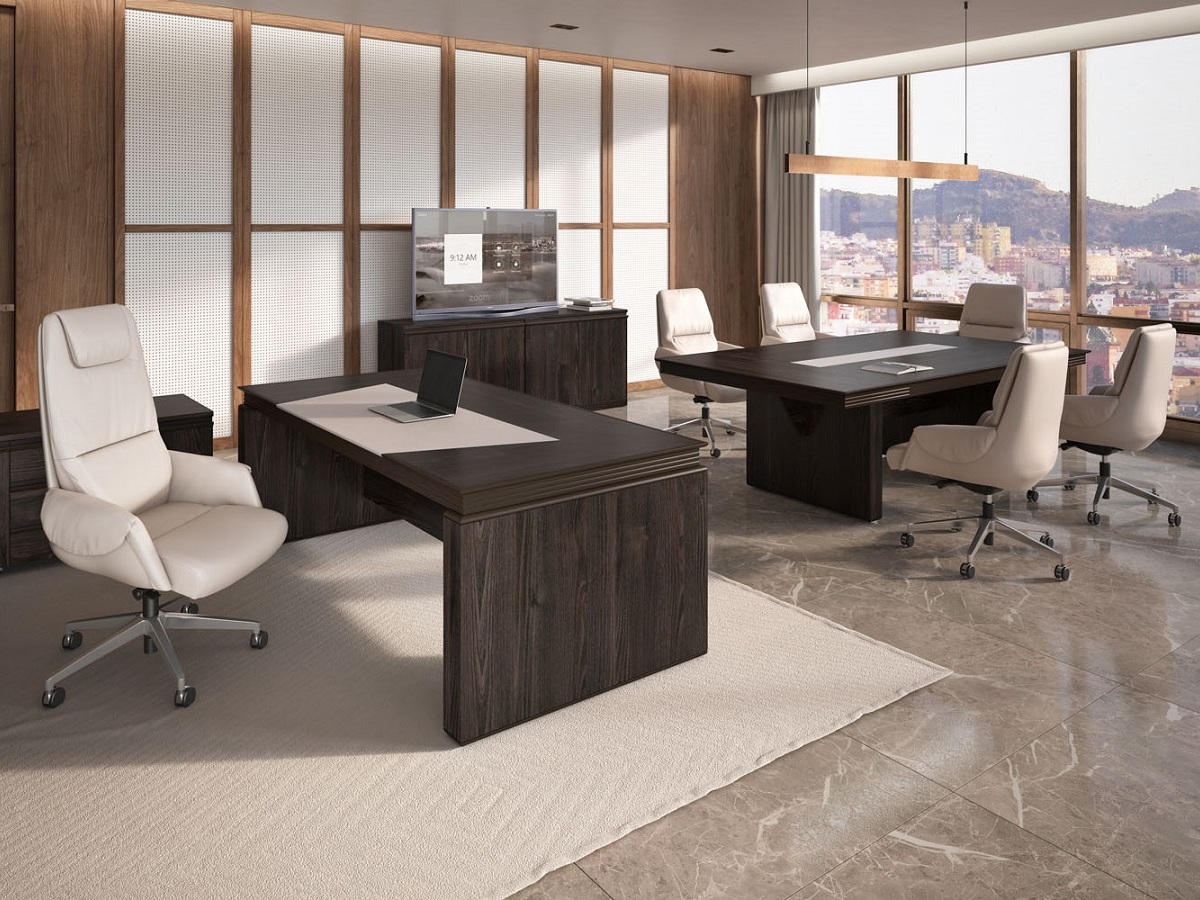 Подход, когда в ассортименте компании есть кабинет премиум-сегмента и практически такой же кабинет бизнес-класса, позволяет создать линейку, предоставляющую возможность оборудовать апартаменты руководителя компании и офисы его заместителей в едином стиле, с соблюдением субординации.