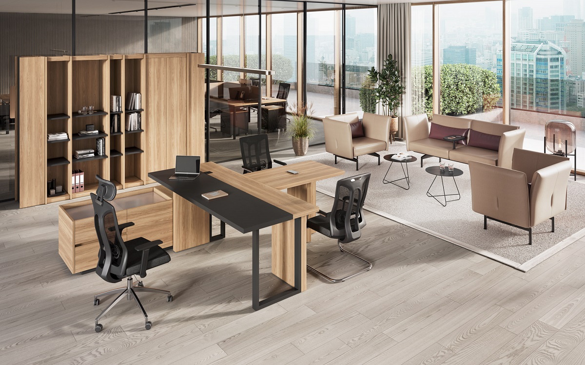Широкая цветовая гамма коллекции: Белый, Rovere, Венге, Салтило, Серый, Орех Гварнери, Антрацит, модный Честерфилд сможет удовлетворить самого взыскательного клиента. Кабинет согласуется с коллекцией мебели для персонала Target Evolution.