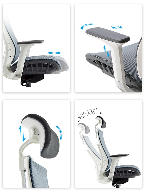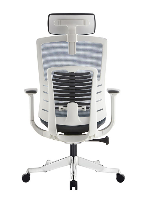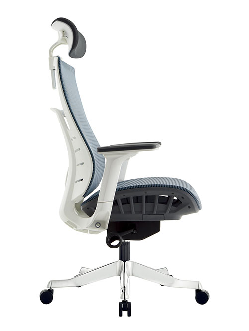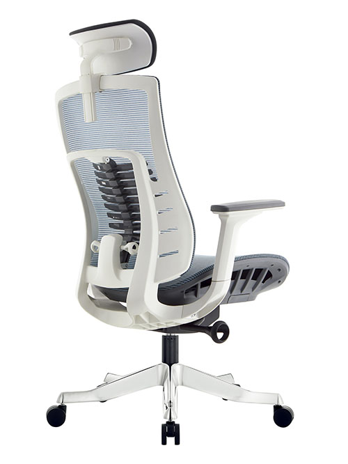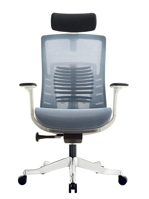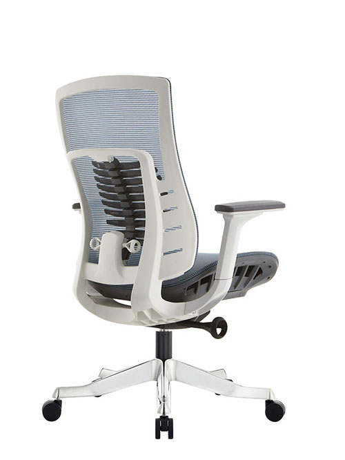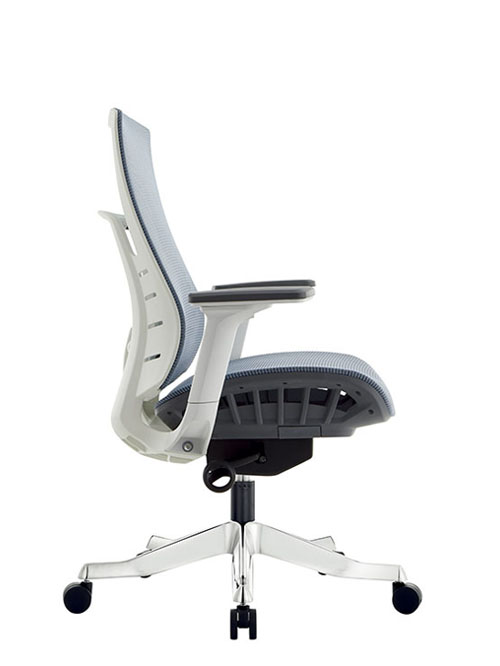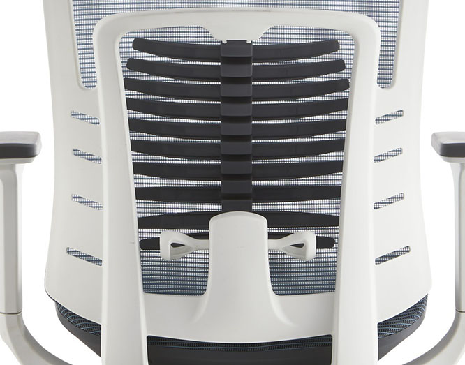 Цветовая гамма: Серо-голубая (или черная) сетка спинки и сидения, белый пластиковый каркас.