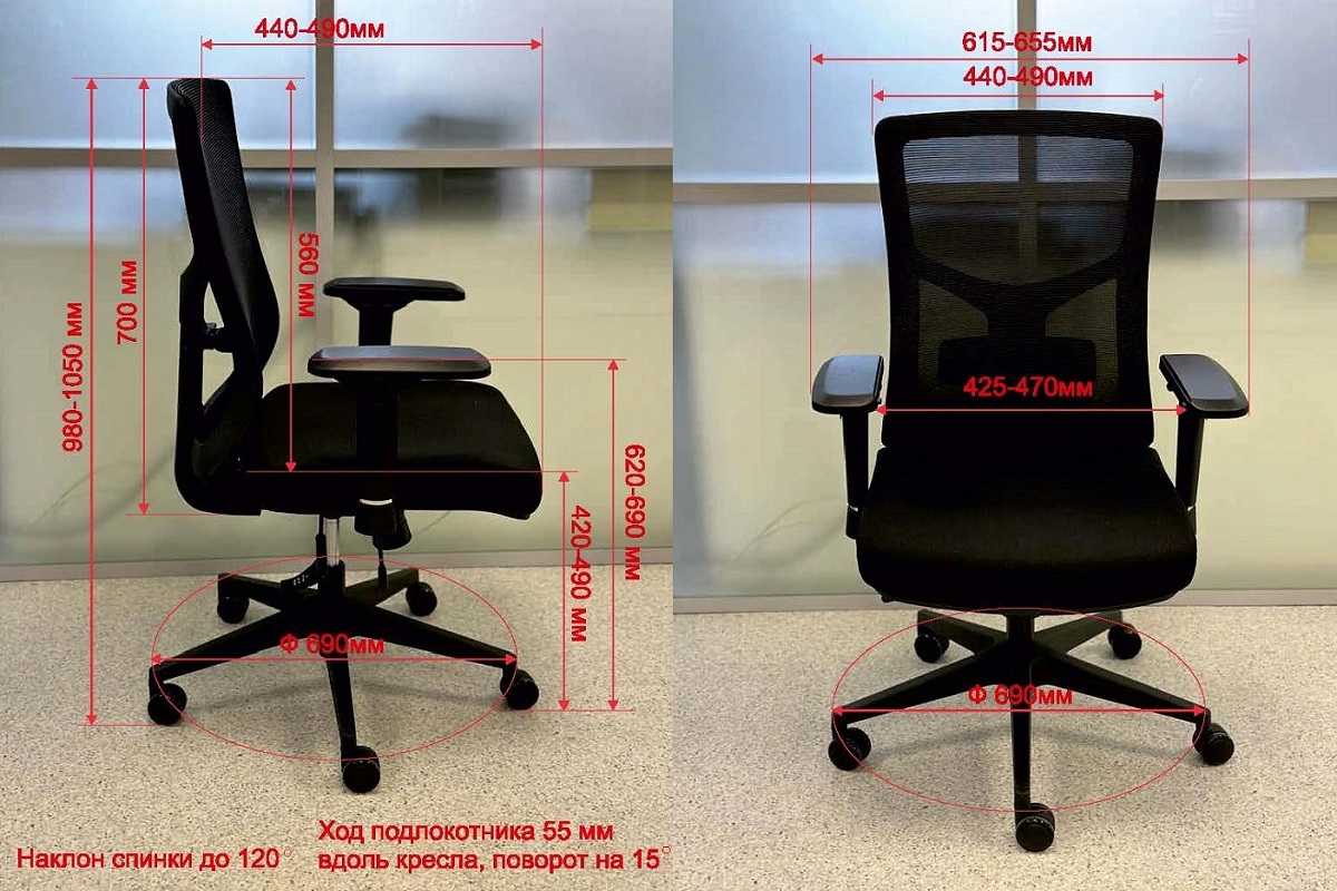 Эргономика модели с 4D подлокотниками продумана до мелочей: мягкие полиуретановые накладки двигаются вдоль кресла по типу слайдера (50 мм), раздвигаются по ширине и поворачиваются на 15 градусов, также подлокотники регулируются по высоте. 4D подлокотник имеет хромированный дизайнерский элемент, который видно при перемещении подлокотника в крайне-верхнюю точку.