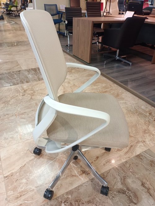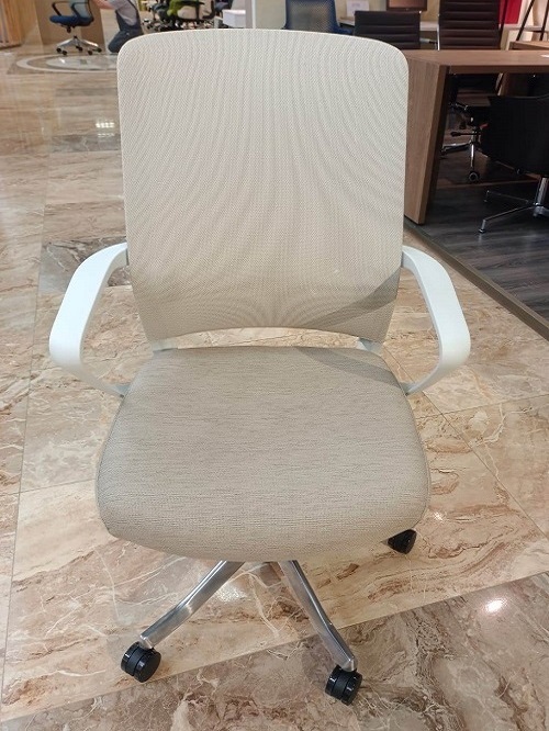Обивка: Бежевая сетка и ткань, белый пластиковый каркас