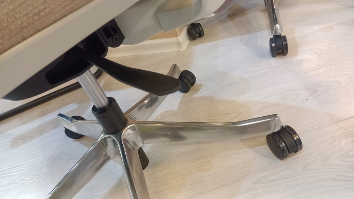 Алюминиевая крестовина, платиковые подлокотники и каркас. Спинка специальной эргономичной формы. Высокоэластичная сетка спинки.
