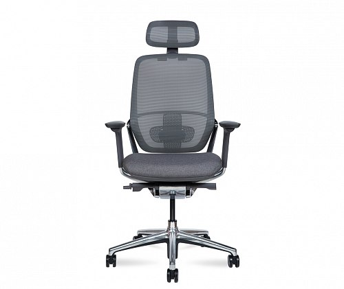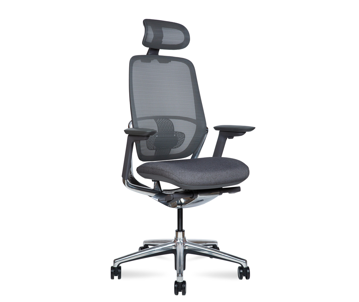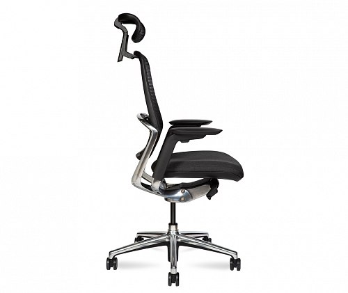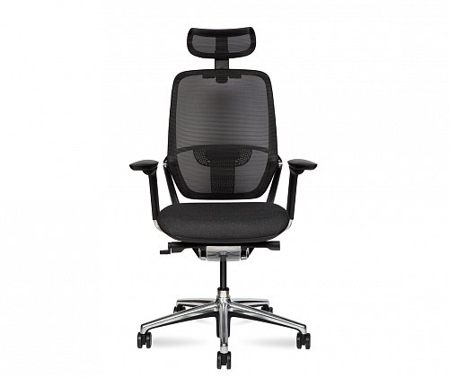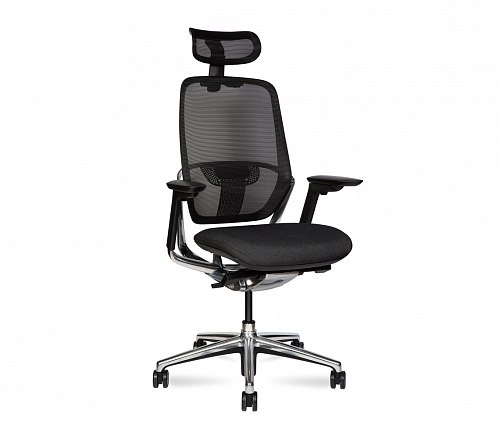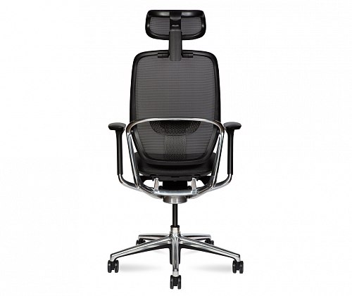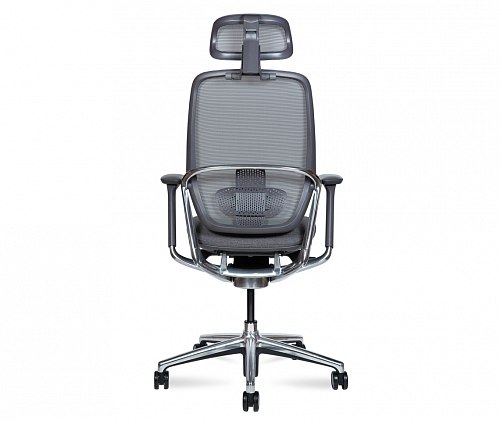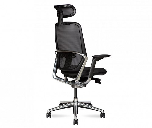 Спинка и подголовник выполнены из прочной сетки, обеспечивающей вентиляцию, а каркас спинки изготовлен из нейлона и соединён с полированным алюминием для прочности и элегантного внешнего вида.