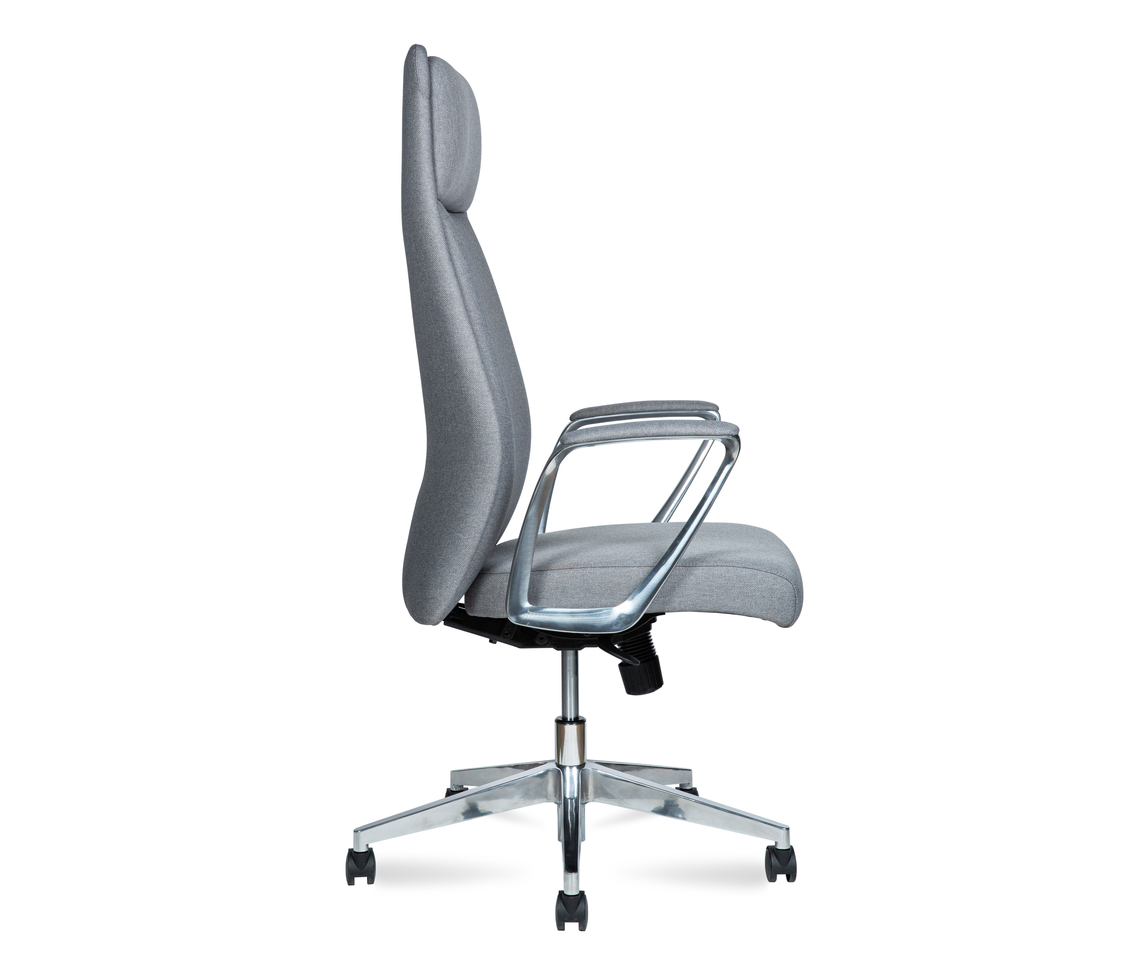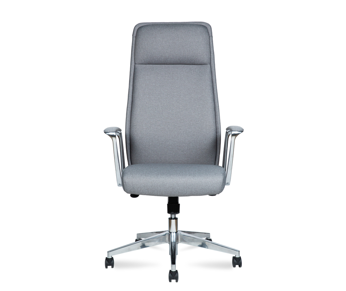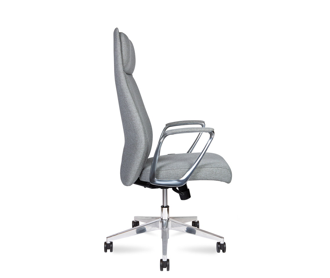 Крестовина из полированного алюминия, колеса из PU. Кресло имеет сертификат BIFMA.