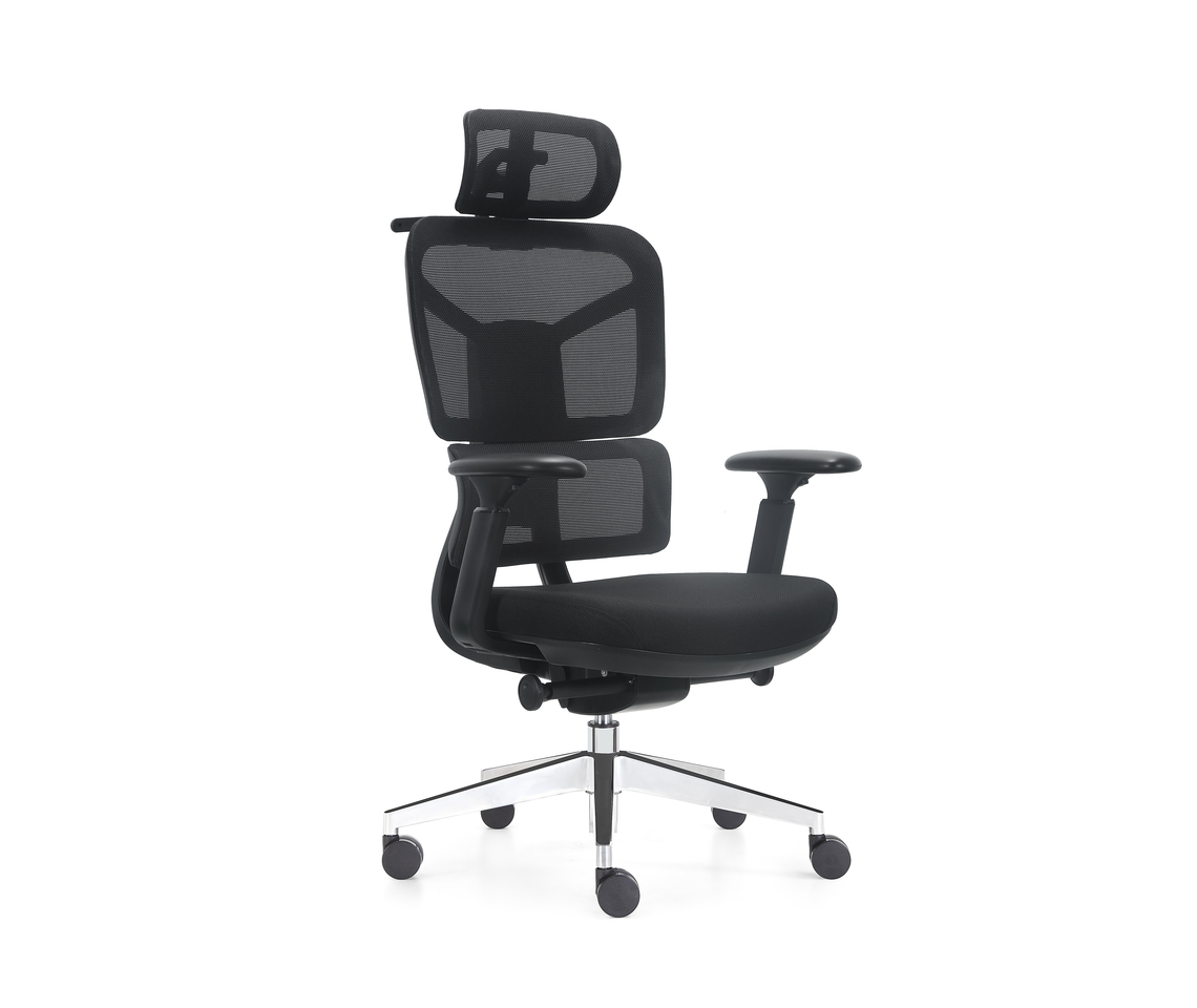 Спинка и подголовник из воздухопроницаемой сетки способствуют естественной вентиляции и поддерживают комфортную температуру.