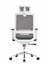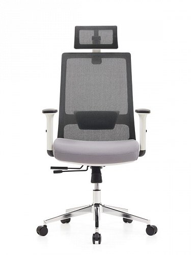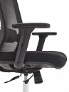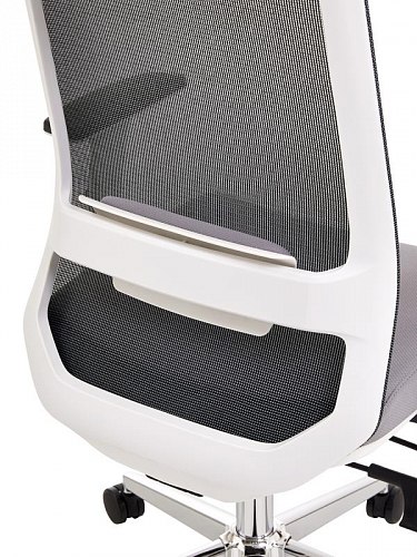 Кресло изготовлено из сетки и ткани в элегантном чёрном и лаконичном сером цветах, что позволяет ему легко вписаться в любой современный интерьер.