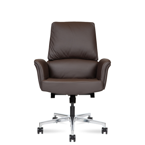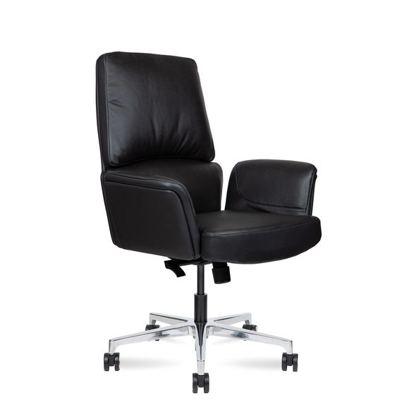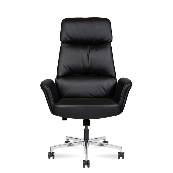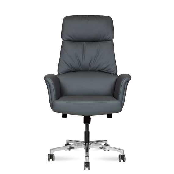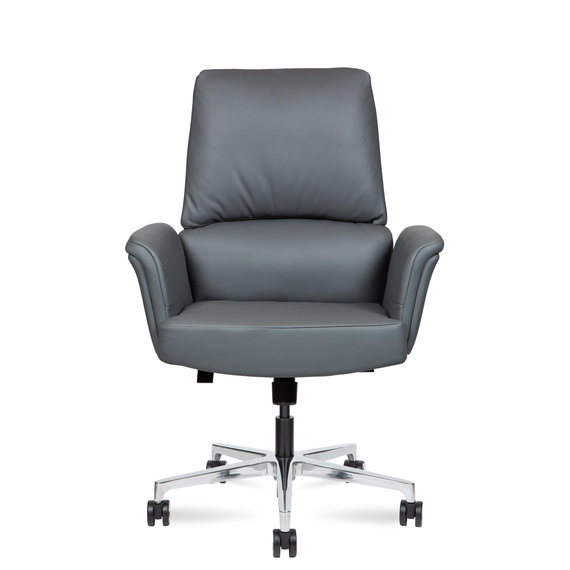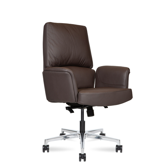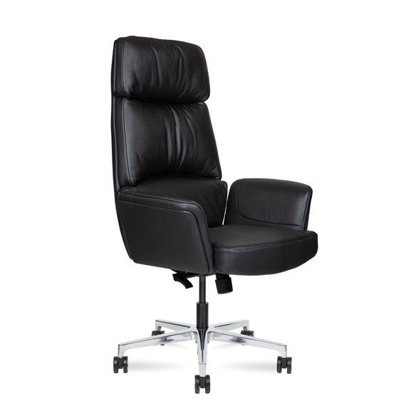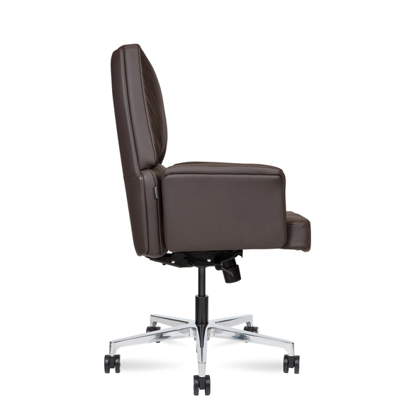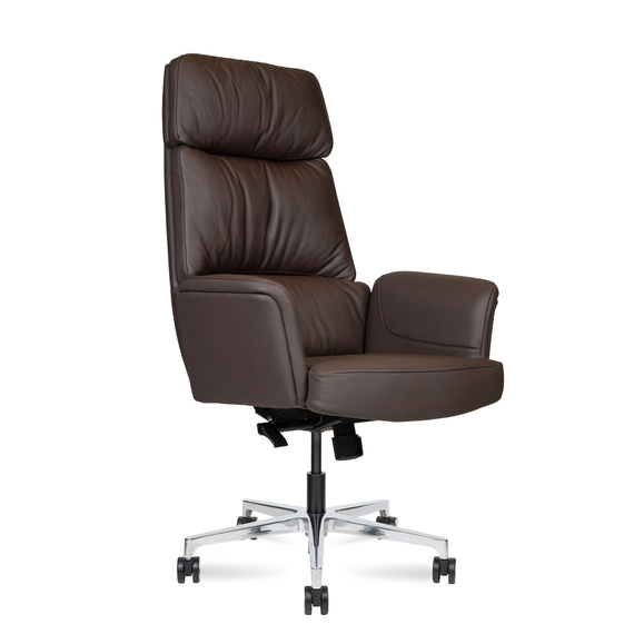 Сиденье и спинка обиты натуральной кожей и наполнены современным материалом memory foam, который точно подстраивается под форму тела, обеспечивая комфорт даже при длительной работе.