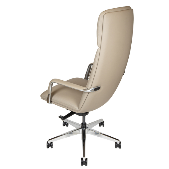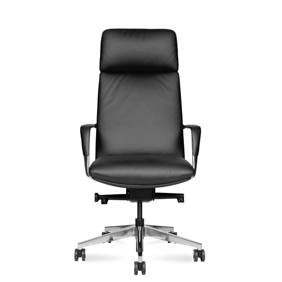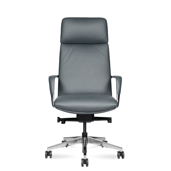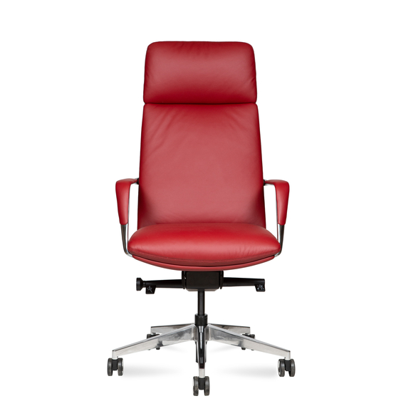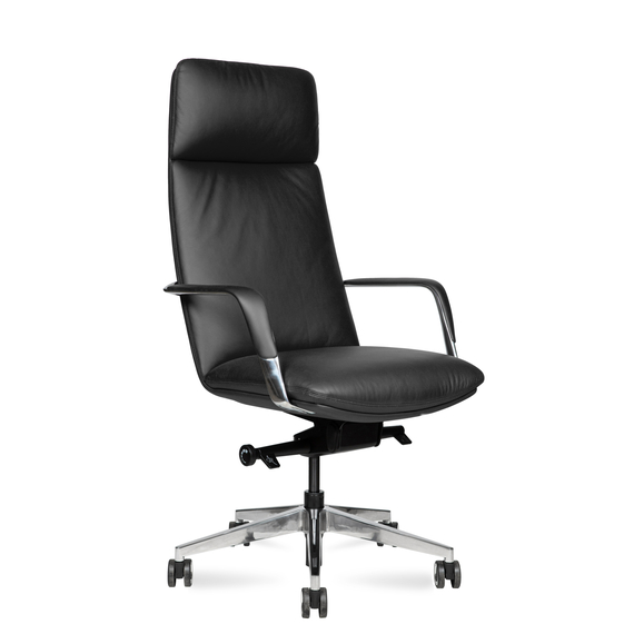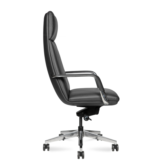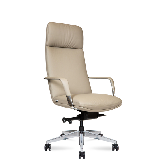 Высокая спинка с подголовником и обтекаемые формы подчёркивают элегантность модели, делая её ярким акцентом в любом офисном интерьере.