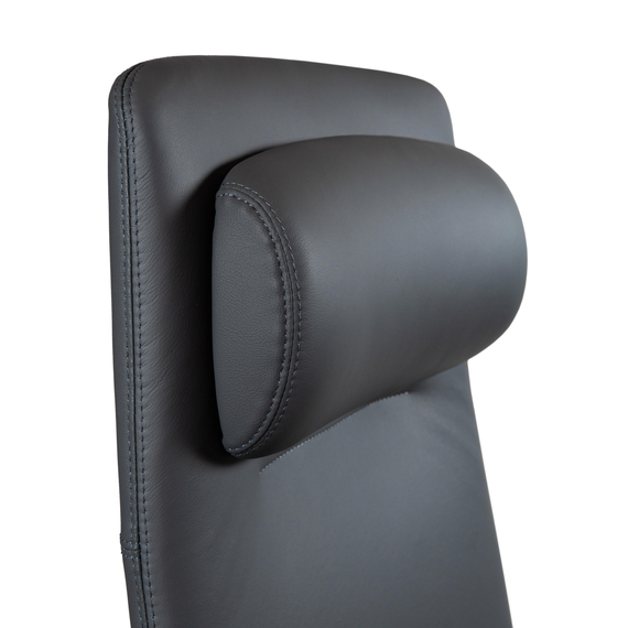 Обивка из натуральной кожи придаёт креслу премиальный вид, а наполнитель из memory foam обеспечивает удобную посадку и равномерное распределение нагрузки. Это особенно важно при длительной работе за столом.