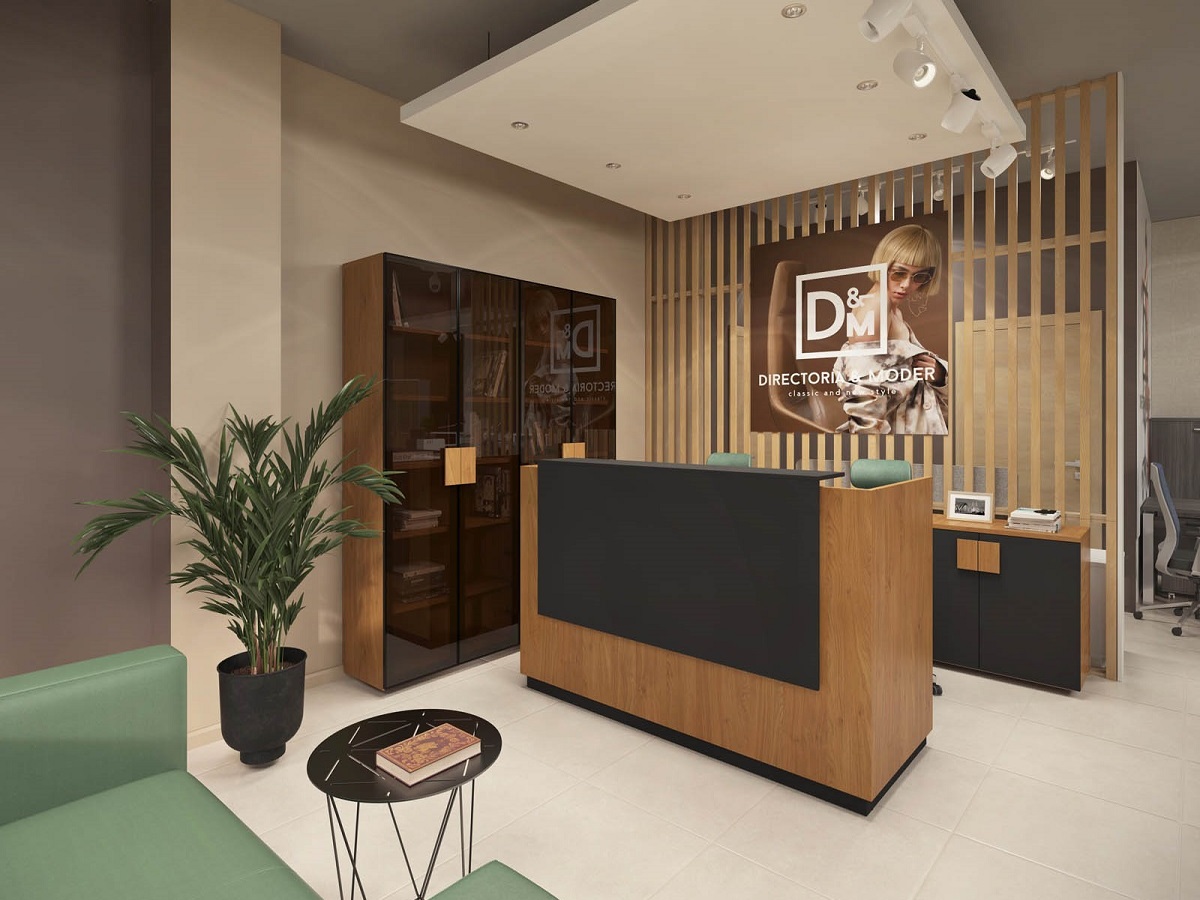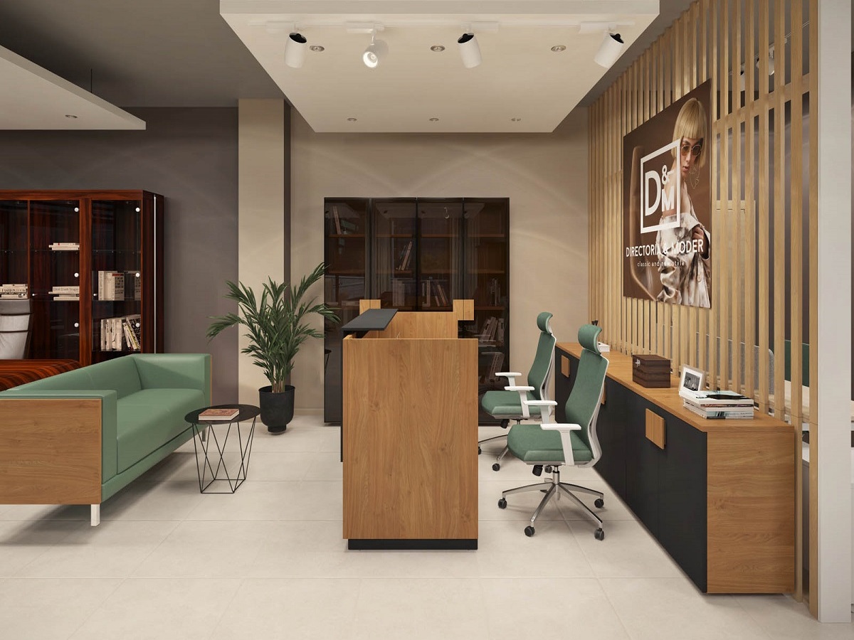 Стойка -ресепшн KYU является продолжением кабинета KYU