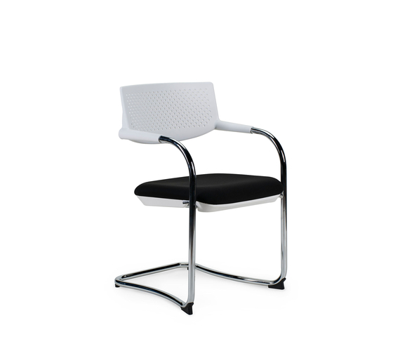 Стильная, перфорированная пластиковая спинка и дышащая износостойкая ткань обивки позволяют телу дышать, что делает сидение очень комфортным.