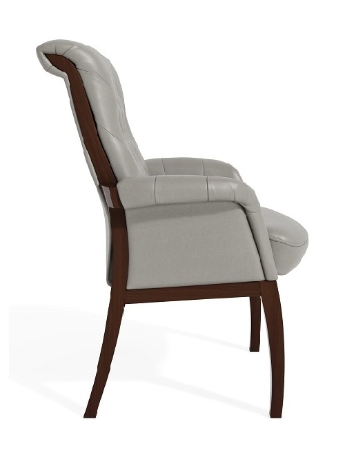 - Для помещений в классическом стиле, обставленных массивными столами из натурального дерева и кожаными диванами, заказывайте модели, которые выглядят солидными и основательными. Отличным вариантом станет стационарное кресло на ножках.